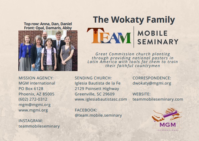In the early part of the summer of 2001, we moved to Hermosillo, Sonora, Mexico, where we served at the Instituto Práctico Ebenezer y Seminario, or Ebenezer Bible College and Seminary, and Iglesia Bautista Emanuel, or Emanuel Baptist Church (Ron Cochran, pastor) until 2018, when we began our second traditional furlough. We now base ourselves out of Greenville, SC to travel throughout Latin America through TEAM Mobile Seminary with pastors and teachers from the U.S., to help national pastors get more training and start local Bible training centers.